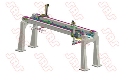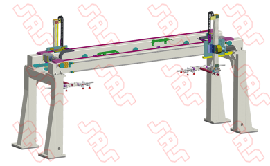 將兩臺單頭拆垛機械手組合設(shè)計在一個機架上節(jié)省空間,穿梭于拆垛臺和輸送線之間,滿足多工位系統(tǒng)高速傳輸要求,節(jié)拍30次/分鐘。